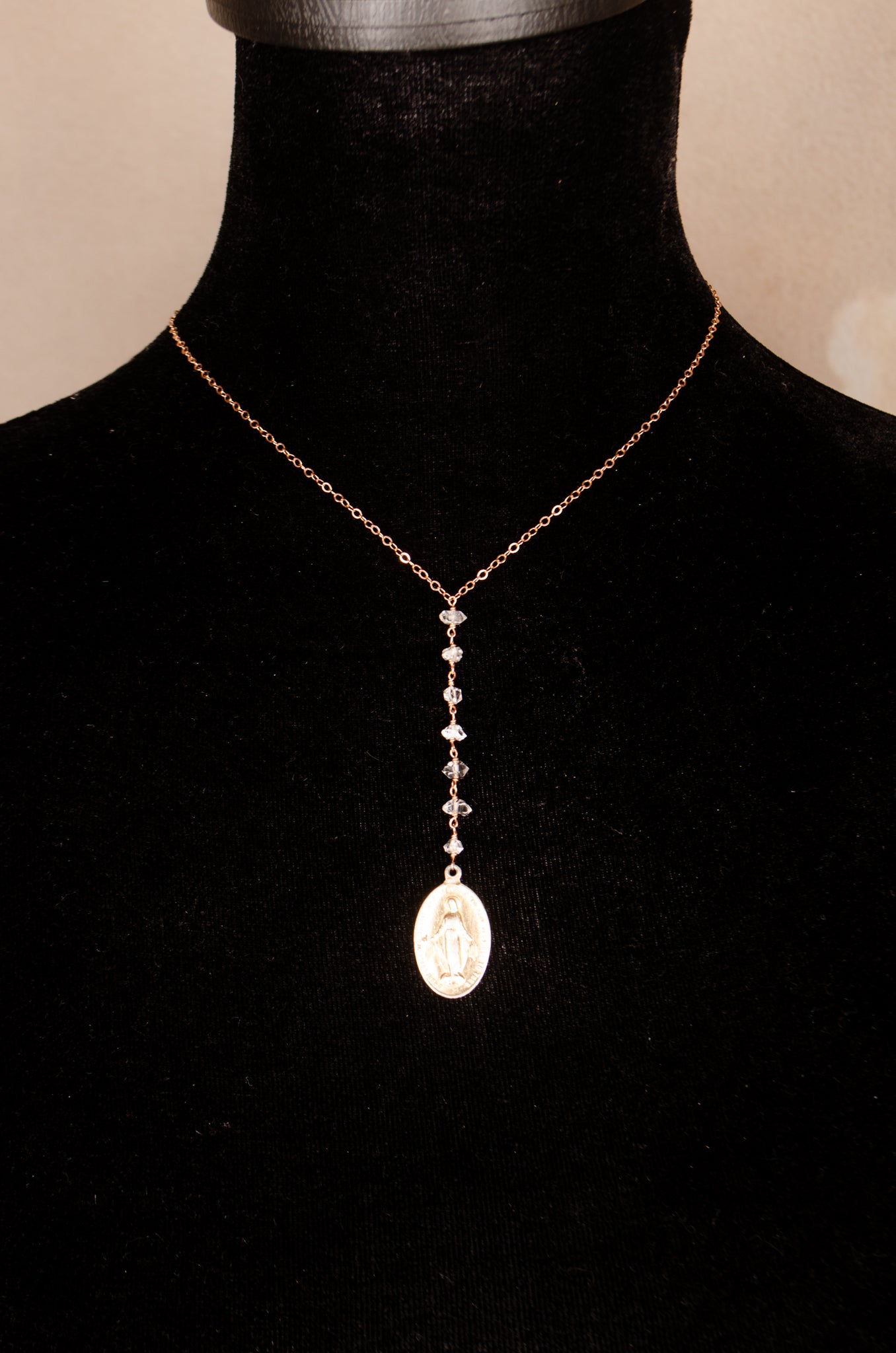Vintage Italian Miraculous Medal with Herkimer Diamond Lariat