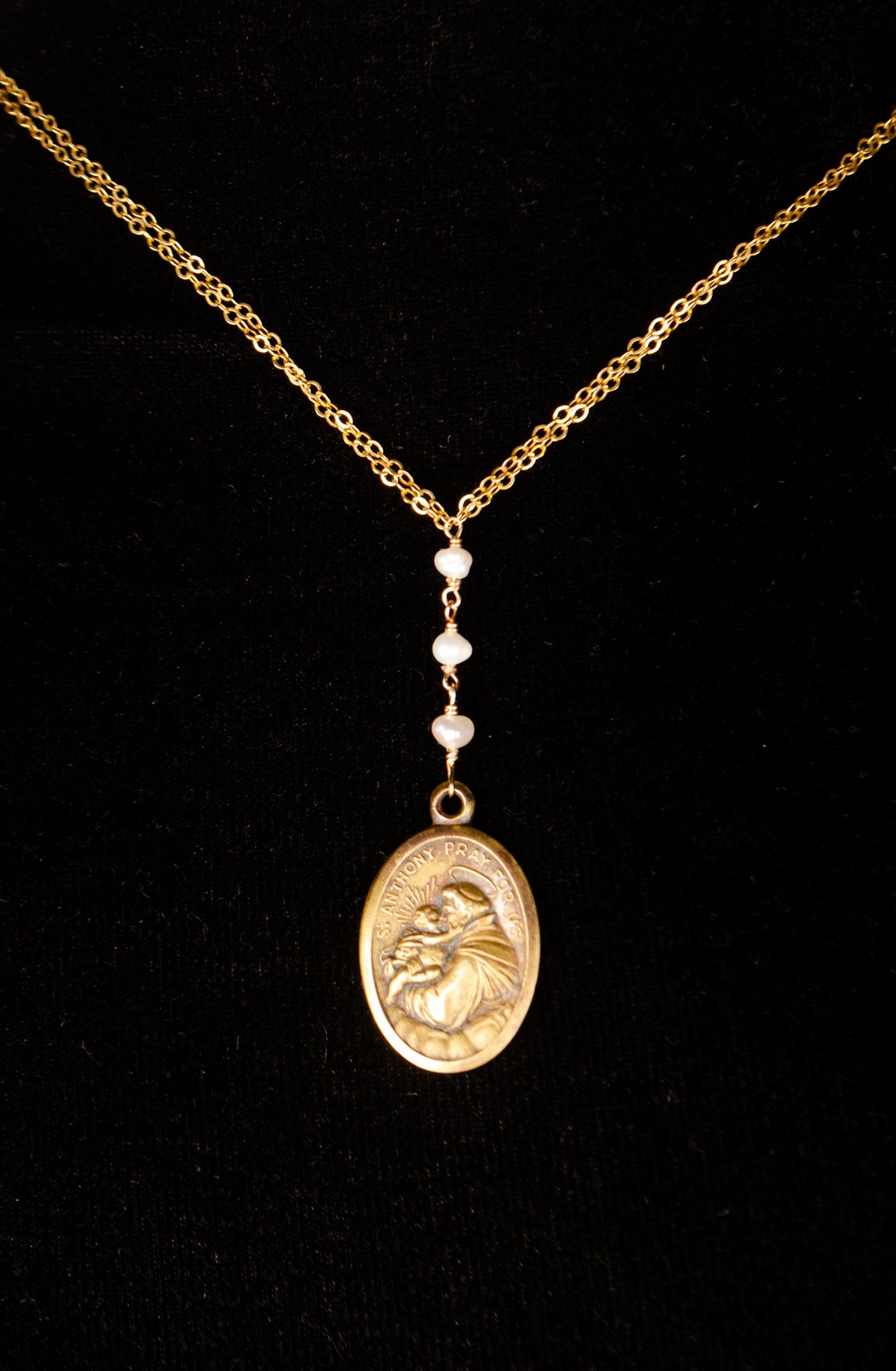 • Vintage Italian St. Anthony Pray For Us/St. Francis of Asissi Lariat, made in Italy