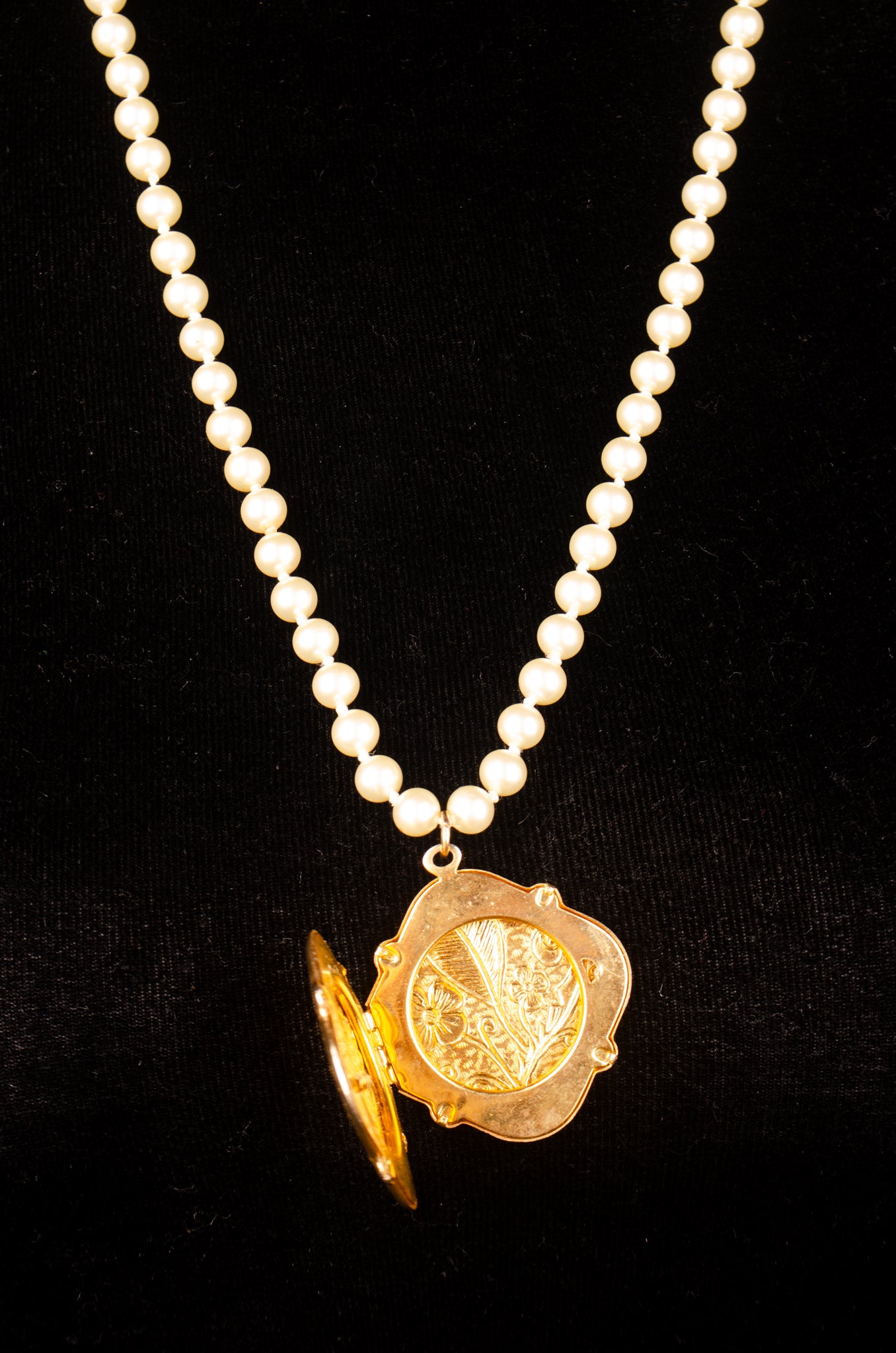 Vintage Brass Locket on Vintage Napier Pearl Necklace